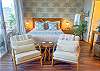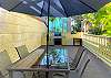 Private, corner Zen lanai with oversized, comfortable outdoor seating, including 2 patio chairs + side table.