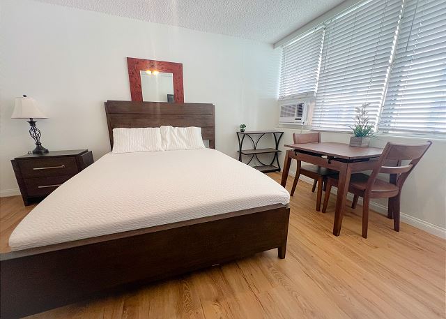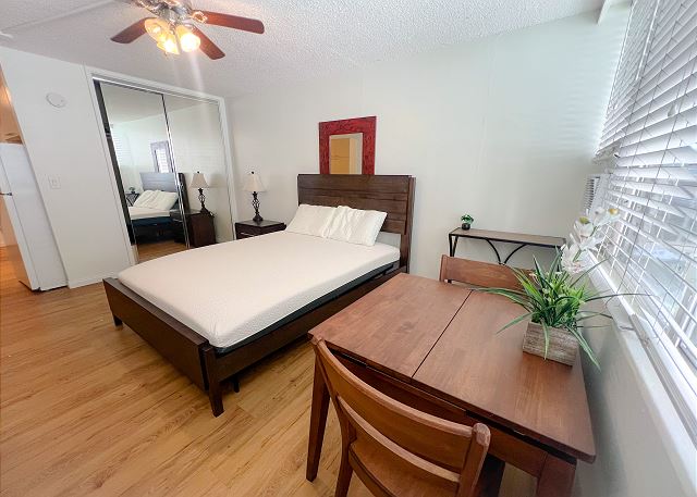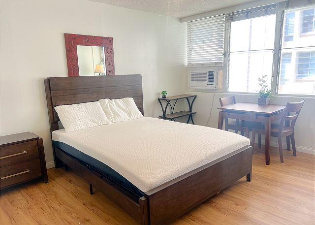 Our home-away-from-home offers a full kitchen, spacious open studio, full bath and generous storage space steps away from all Waikiki has to offer.
