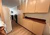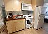 This home includes a full kitchen with fridge and freezer, kitchen sink, oven with stove, microwave, coffee maker, dishes, cups, cookware, toaster, cutlery and coffee mugs. Features counter and ample cupboard space with convertible dining table and/or work desk in living area.