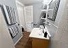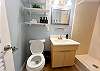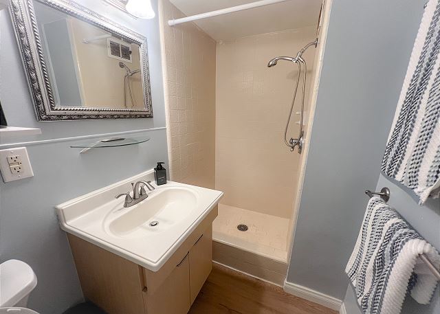 Our home offers queen size bed in the living area (sleeps 2) and full bathroom with vanity area and shower/tub combo.
